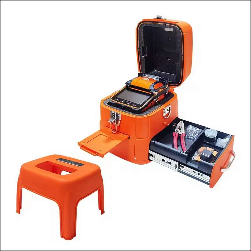 AI-9 Optical Fiber Fusion Splicer use the latest core alignment technology with auto focus and six motors, it is a new generation of fiber splicing machine. It is fully qualified with trunk construction of medium and short distance, FTTH project, security monitoring and other fiber cable splicing projects. The machine uses industrial quad-core CPU, fast response, is currently one of the fastest fiber splicing machine in the market; with 5-inch 800X480 high- resolution screen, the operation is simple and intuitively; and up to 300 times focus magnifications, making it is very easy to observe the fiber with naked eyes. 5 seconds speed core alignment splicing, 15 seconds heating, the working efficiency increased by 50% compared to ordinary splicing machines. -Under the conditions of rigorous testing, the performance is still outstanding; toolbox is small, exquisite, durable, and with unique bench design. The design of operating platform reflects the humanistic care; unique lighting design, it is convenient for night construction or repair. Screen brightness is adjustable and it is convenient for outdoor sunshine environment operation. The core parts are using imported brands, aviation metal body material with exquisite details. With the combination of advanced technology and design, the new generation of optical fiber fusion splicer will bring you a reliable and comfortable
